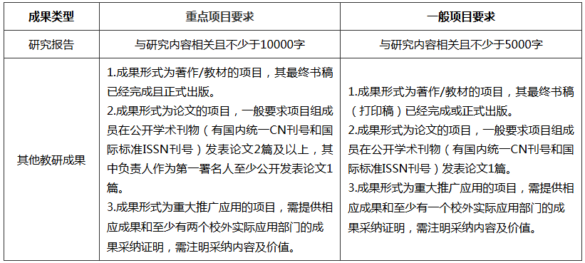 2.结项要求:须提交1份与研究内容相关的研究报告,并附1项及以上教研成果(教改论文、教材著作、重大推广应用等),所有成果须标注“武汉纺织大学研究生教育教学改革研究项目(课题名称,课题编号)”。具体要求如下:
