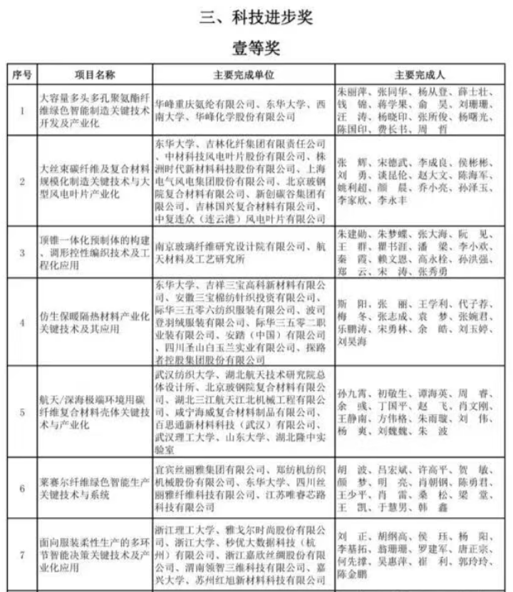 日前,中国纺织工业联合会科学技术奖建议授奖名单公示清单发出,其中科技进步奖一等奖共有9项,由武汉纺织大学联合湖北航天技术研究院总体设计所等院所、企业共同完成、孙九霄教授为第一完成人的极端环境用碳纤维复合材料壳体关键技术与产业化项目跻身其中。孙九霄,武汉纺织大学教授,硕士生导师,武汉理工大学材料学博士,他的主要研究领域有船舶复合材料研发及应用、纤维增强树脂基复合材料结构设计及成型和智能复合材料。作为中国复合材料学会教育培训工作委员会委员和船舶与海洋工程复合材料专业委员会委员,他近年来主持多项复合材料HJZB国防型号科研、JPPT项目、湖北省重点研发项目及30余项企业委托项目,参与多项国防型号科研、预研、国家自科基金项目,取得了系列创新性研究成果,2023年获中国纺织工业联合会科技进步一等奖(排名第一)。