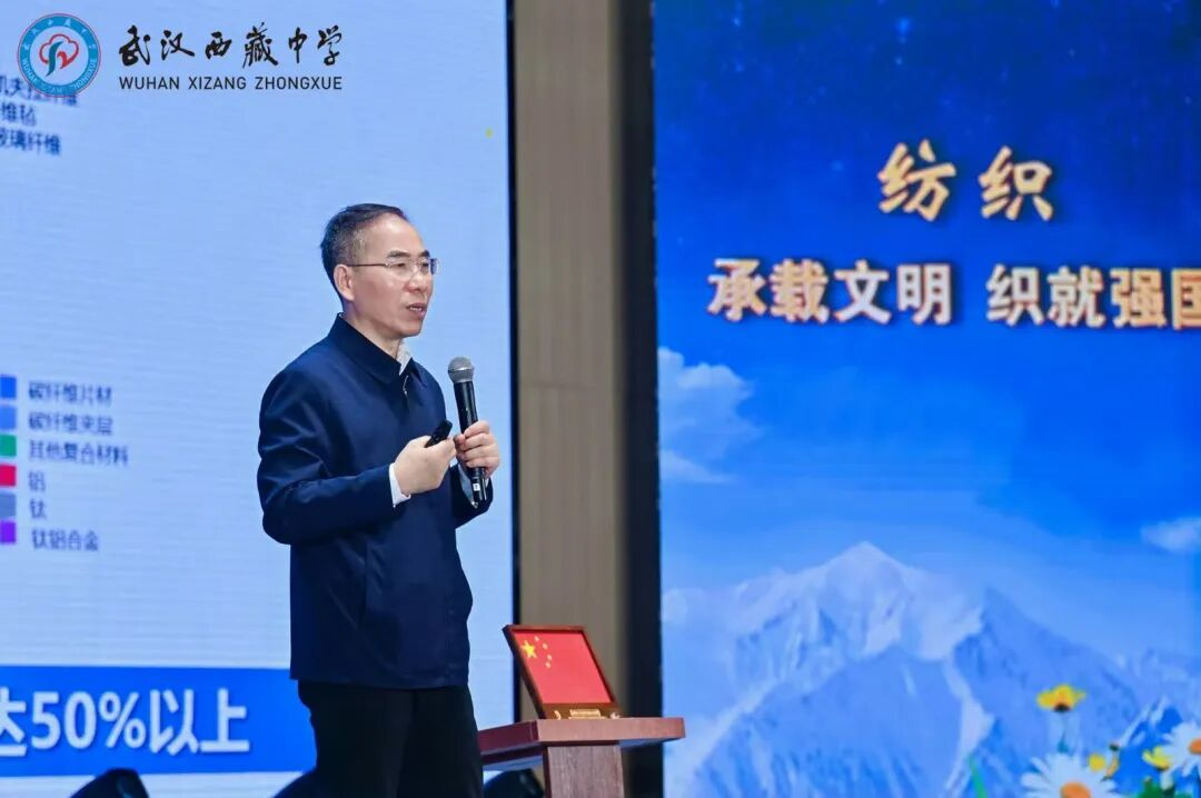武汉西藏中学校长徐峰在致辞中说:“徐院士把‘纺织,承载文明 织就强国’的宏大叙事,化为经纬交织、可感可知的生动图景。作为新时代西藏学子,我们当以徐院士为榜样,如经纬织梦、似格桑向阳,勇担时代使命。”