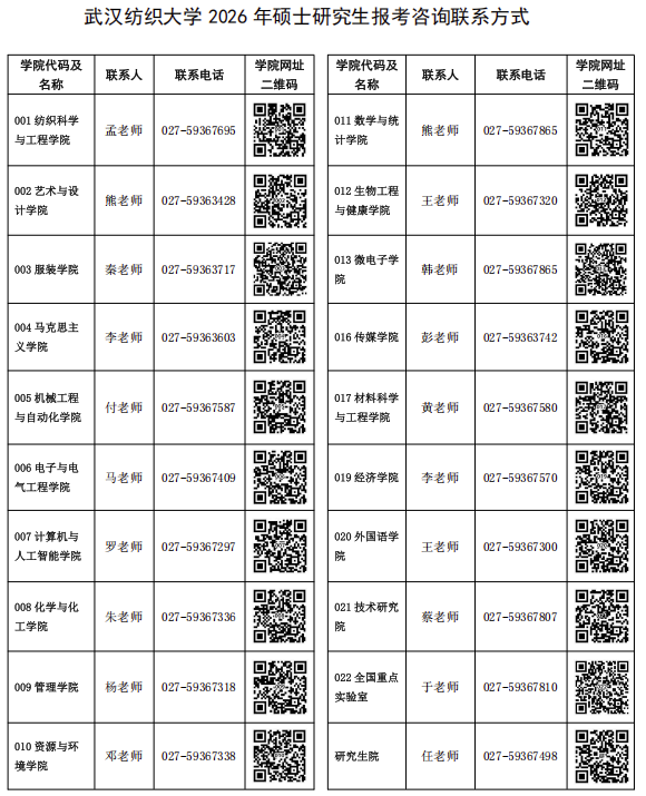 学校2026年硕士研究生招生相关信息会及时在“武汉纺织大学研究生院”官网(https://gs.wtu.edu.cn)、“武汉纺织大学研究生”微信公众号