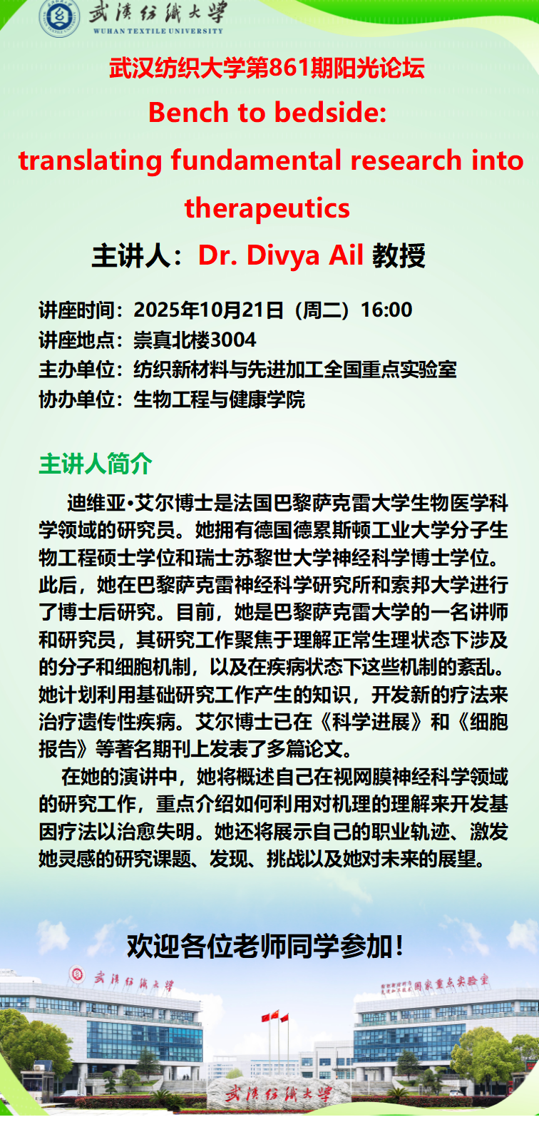 武汉纺织大学第861期阳光论坛