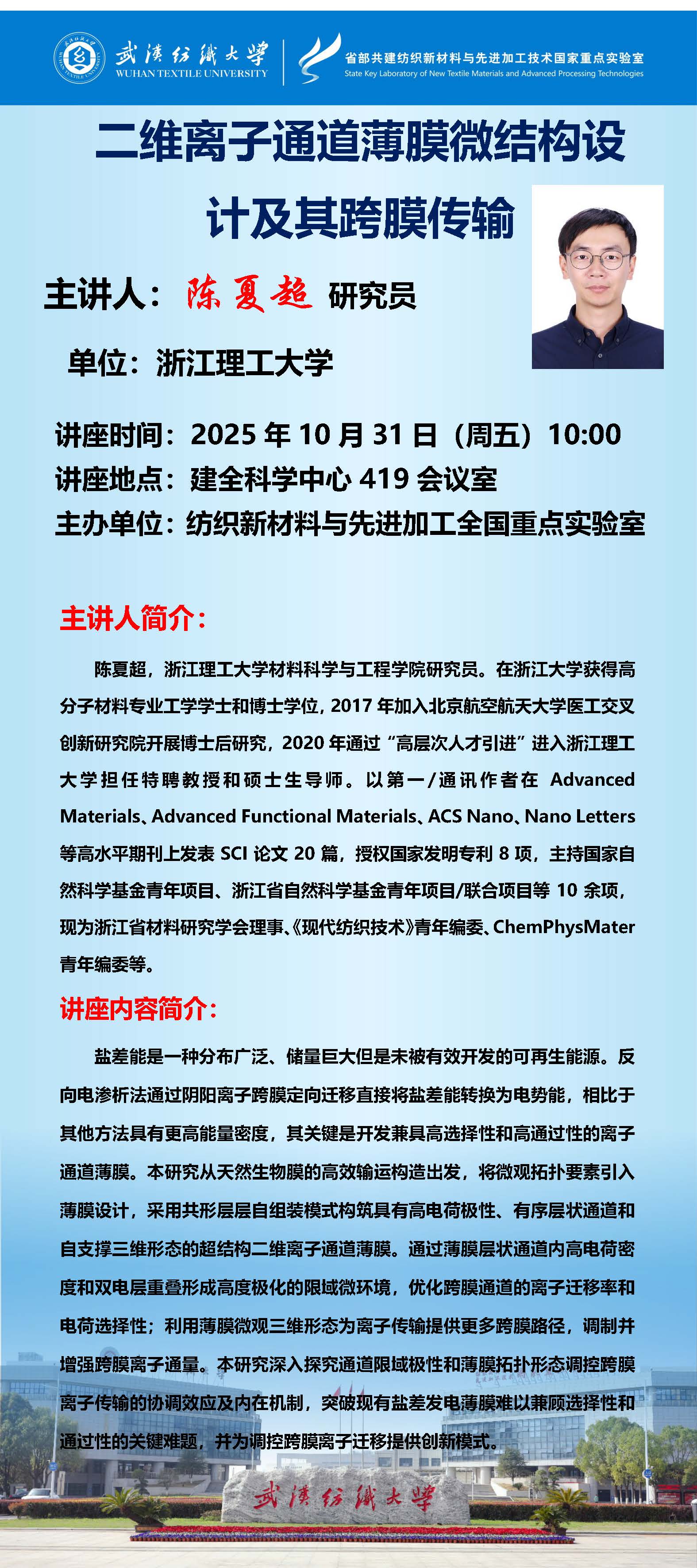 二维离子通道薄膜微结构设计及其跨膜传输--陈夏超 研究员