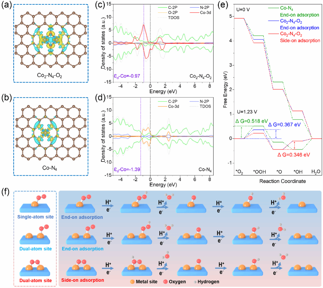 图2. Co-O2-Co/HPCN催化剂中氧桥联钴双原子位点电催化ORR机制